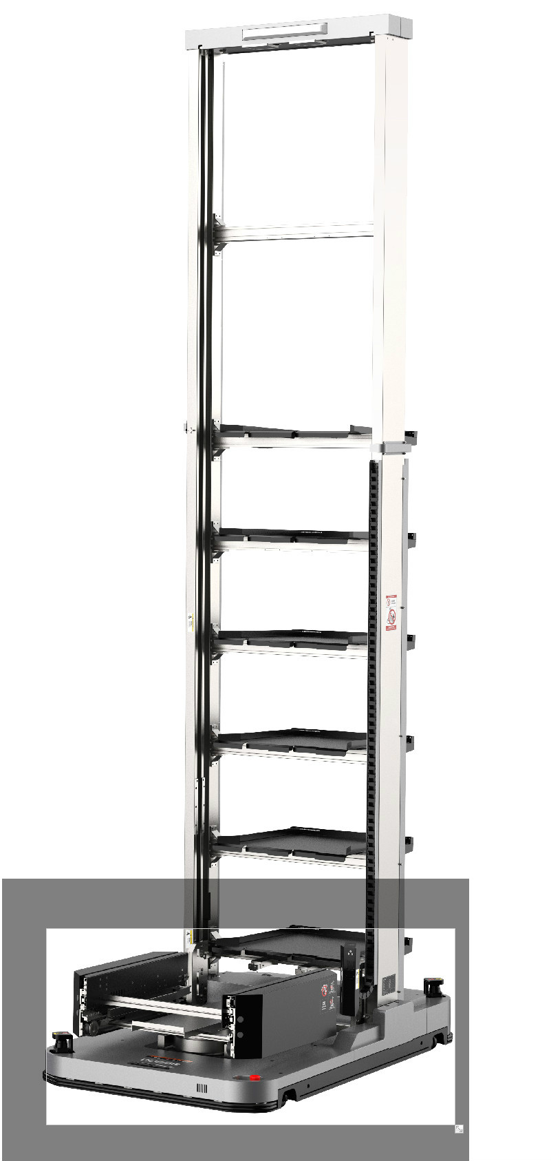 車身低矮,可以進入低矮的料架地下牽引。潛伏牽引并且雙向運行可以使轉(zhuǎn)彎半徑縮小,占地面積小。 驅(qū)動單元一鍵電動升降方便維護。最多可以指定1024個站點。 激光傳感器安全防護到位